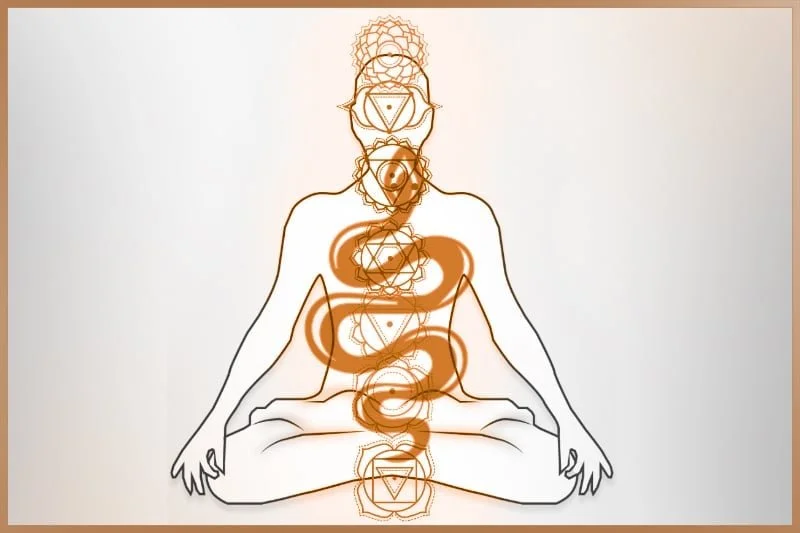 De slang verwijst naar de levensenergie die in ieder van ons ‘berust’ aan de basis van onze wervelkolom. Ter hoogte van ons stuitje bij onze eerste chakra ligt de poort naar onze Kundalini energie. Als deze levensenergie die symbolisch gezien als een opgerolde slang ligt te slapen wordt aangewakkerd, stijgt zij verder omhoog via de zeven hoofdchakra’s naar onze kruin.